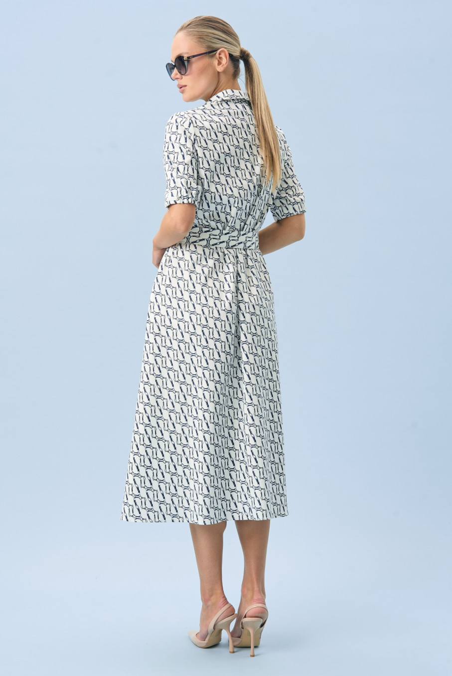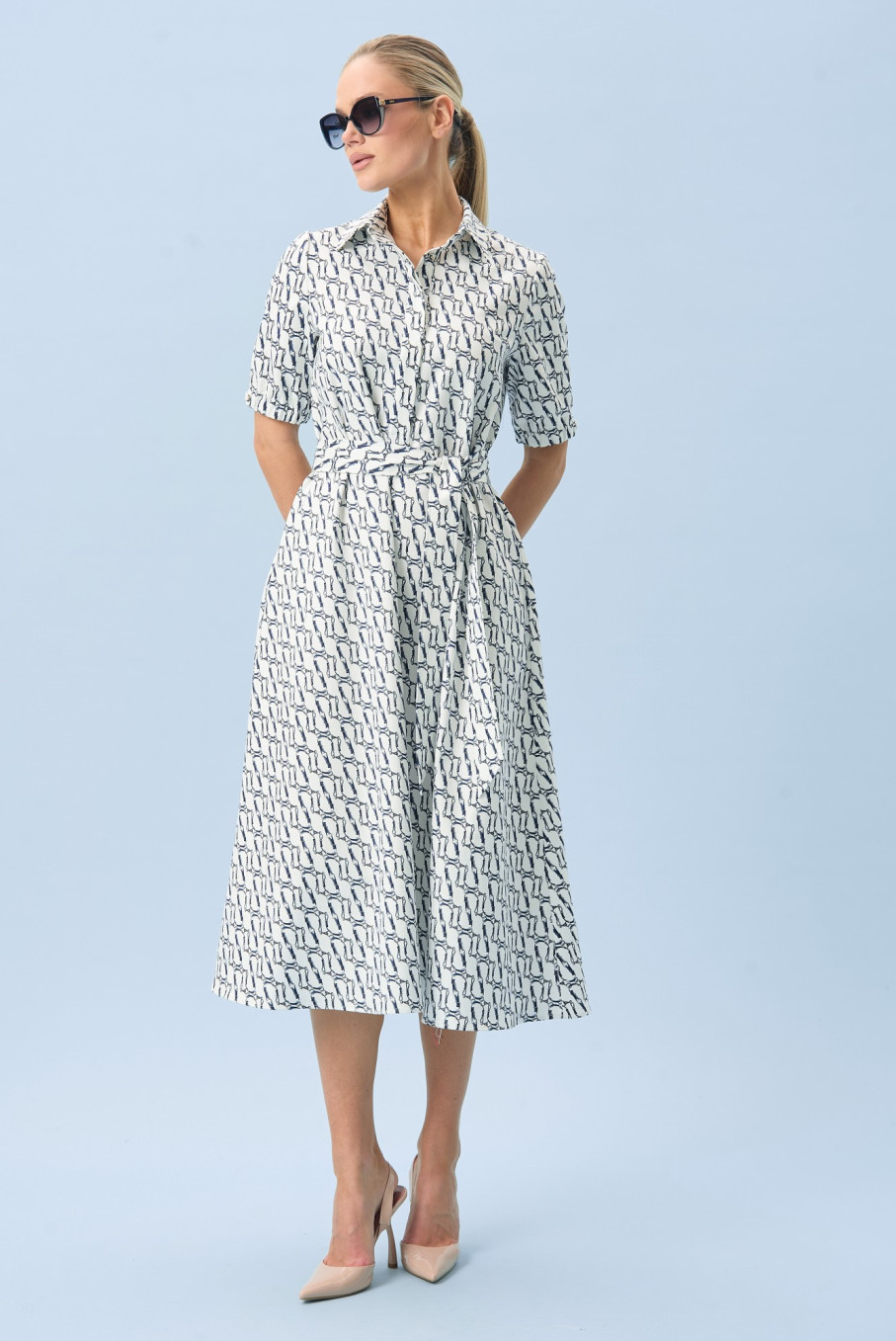 Аккуратный воротник добавляет образу собранности, а пояс подчеркивает талию и делает силуэт более выразительным. Короткий рукав делает модель удобной для теплой погоды, а сама длина сохраняет баланс между легкостью и элегантностью. Благодаря этому платье женское летнее повседневное подходит тем, кто любит красивую, но практичную одежду.