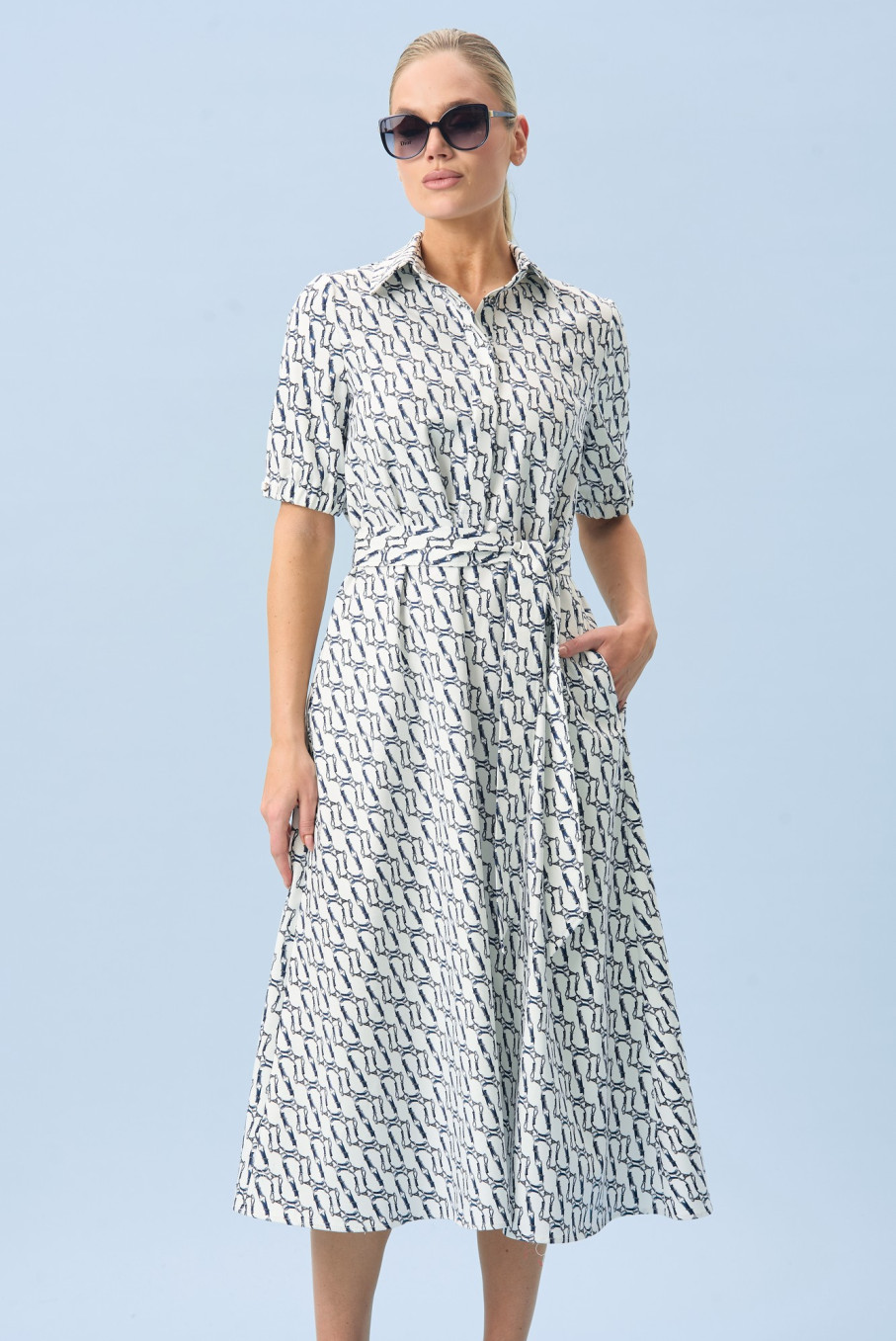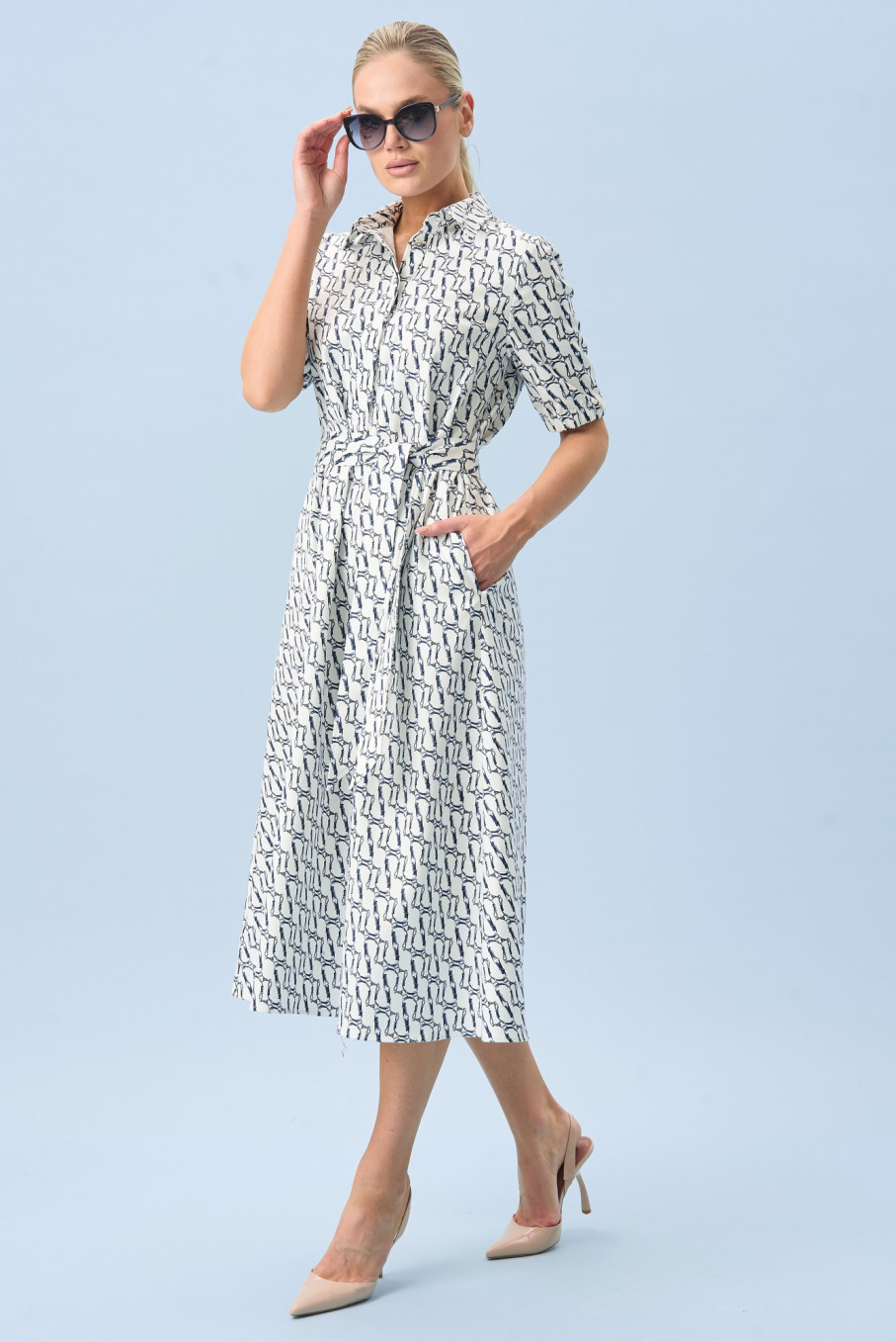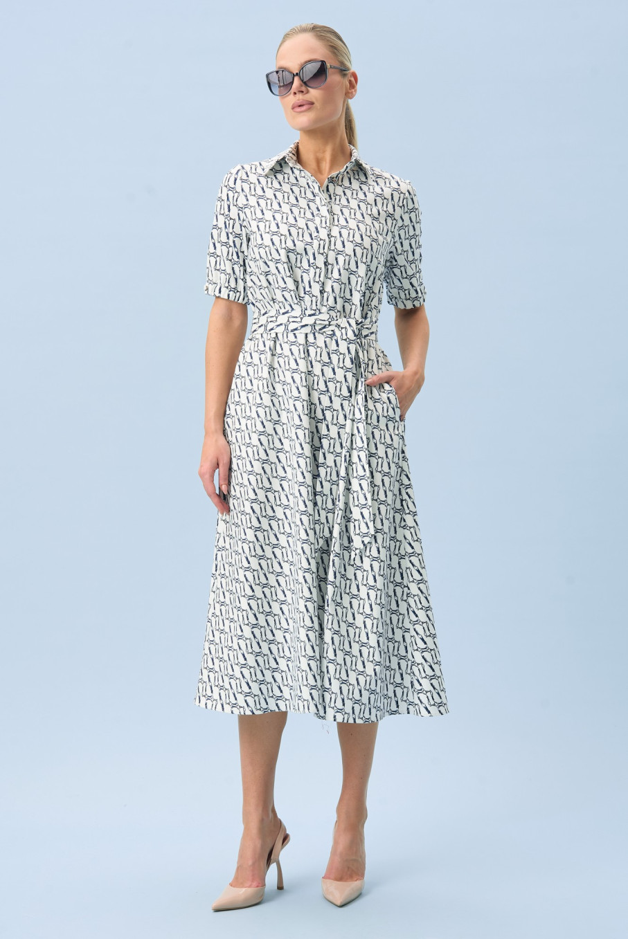 Главная визуальная идея модели - морское настроение. Белый фон и синий принт создают выразительный, но спокойный образ, поэтому платье в морском стиле женское выглядит благородно и современно. Оно не кричит о себе, а говорит уверенно: вкус есть, лишнего не нужно. Такой рисунок отлично вписывается и в отпускной гардероб, и в городскую капсулу.