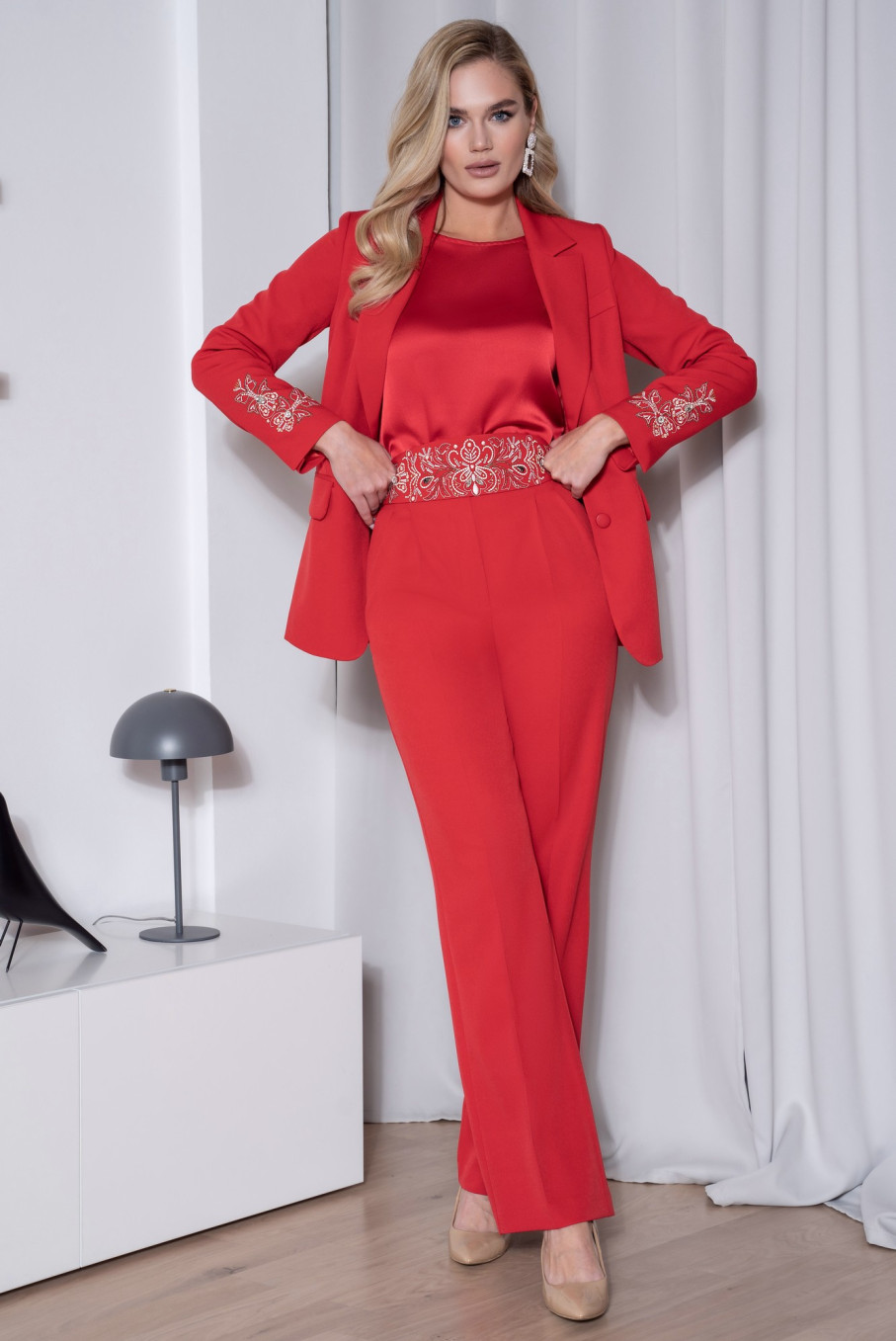 Женский нарядный брючный костюм красного цвета URS - это тот самый нарядный костюм женский праздничный, который выручает, когда нужен сильный образ без долгих сборов. Если вы искали красный костюм женский брючный, чтобы выглядеть ярко и уместно на торжестве - вы по адресу.