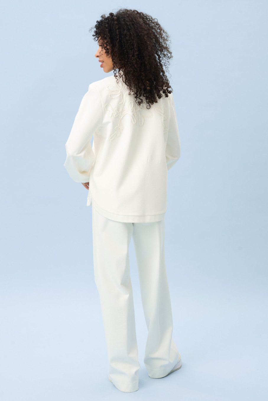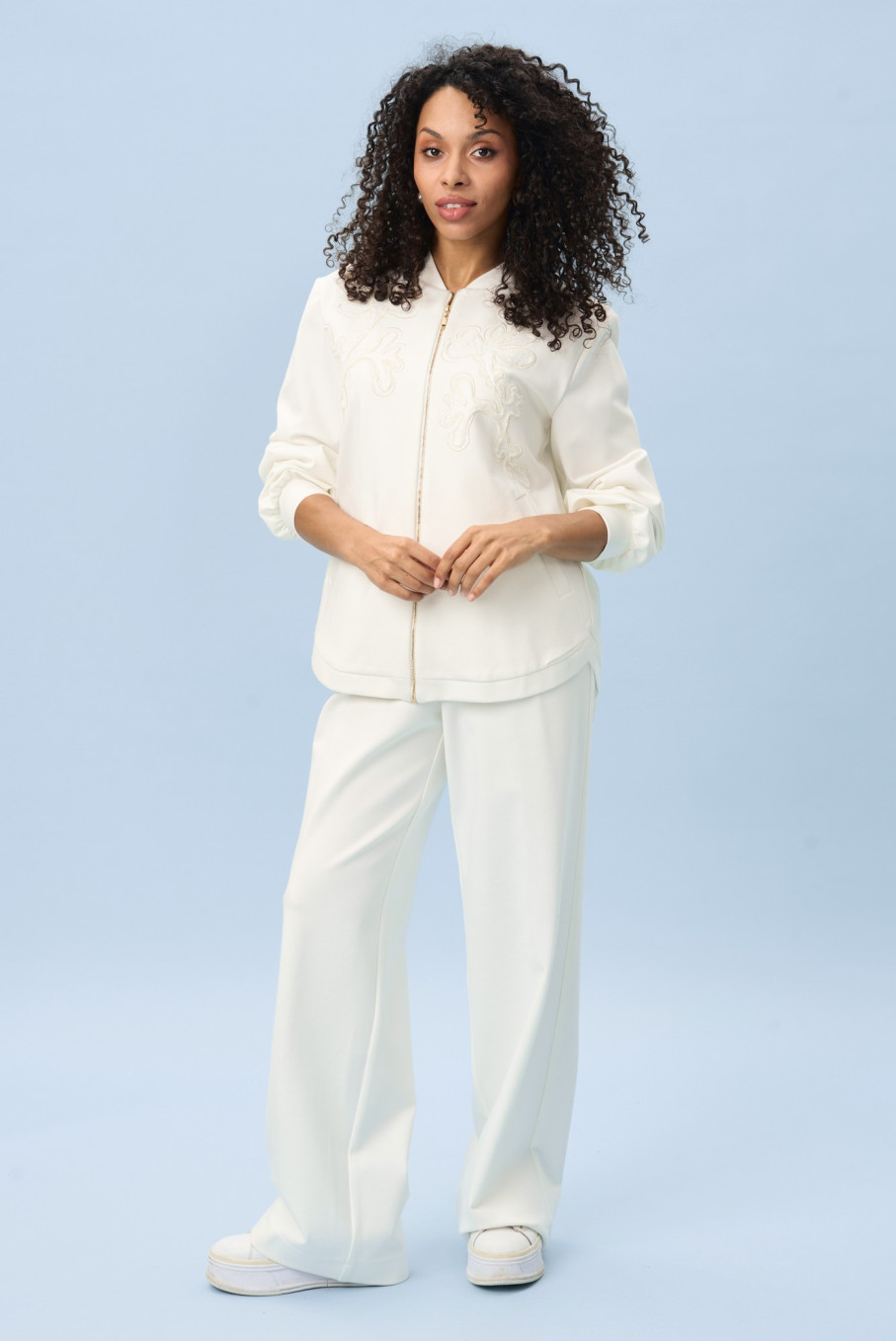 Свободные брюки создают вытянутый силуэт и визуально добавляют стройности, а верх в формате свитшота с вышивкой добавляет образу мягкости и женственности. Такой костюм повседневный с брюками женский подойдет для разных типов фигуры и легко адаптируется под индивидуальный стиль.