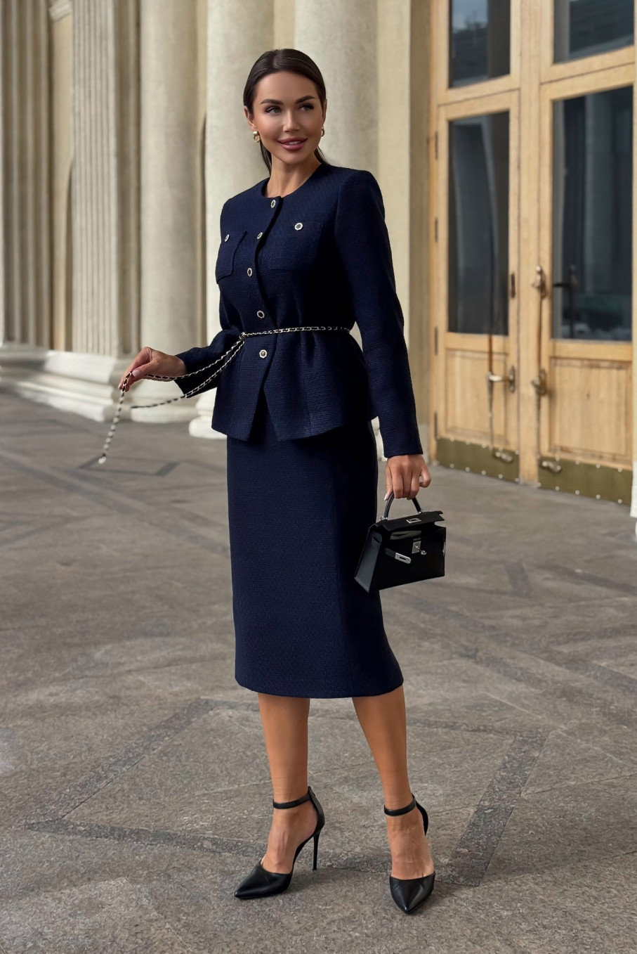 Такой синий твидовый костюм женский – надежная инвестиция в гардероб, которая подчеркнет статус, вкус и индивидуальность своей обладательницы.