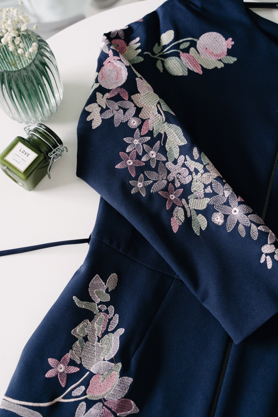 Главная особенность модели - выразительная вышивка, которая украшает платье и делает его визуально дороже. Орнамент расположен продуманно: он подчеркивает линии силуэта, оживляет темно-синий фон и формирует тот самый эффект "как из Pinterest", который сегодня особенно ценят покупательницы. Поэтому платье вполне можно назвать платье женское pinterest, но не в мимолетном трендовом смысле, а как по-настоящему стильную вещь с актуальной эстетикой.