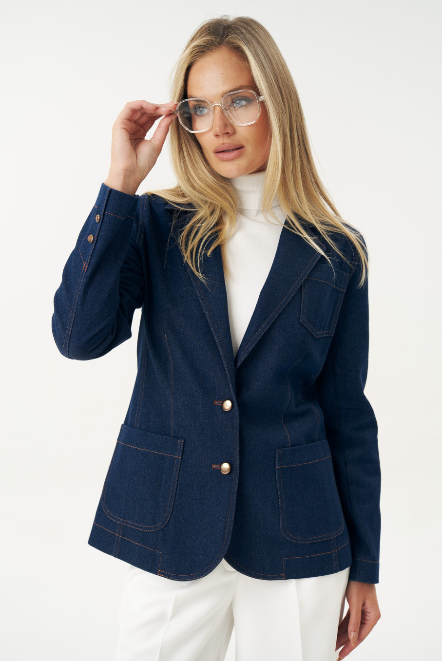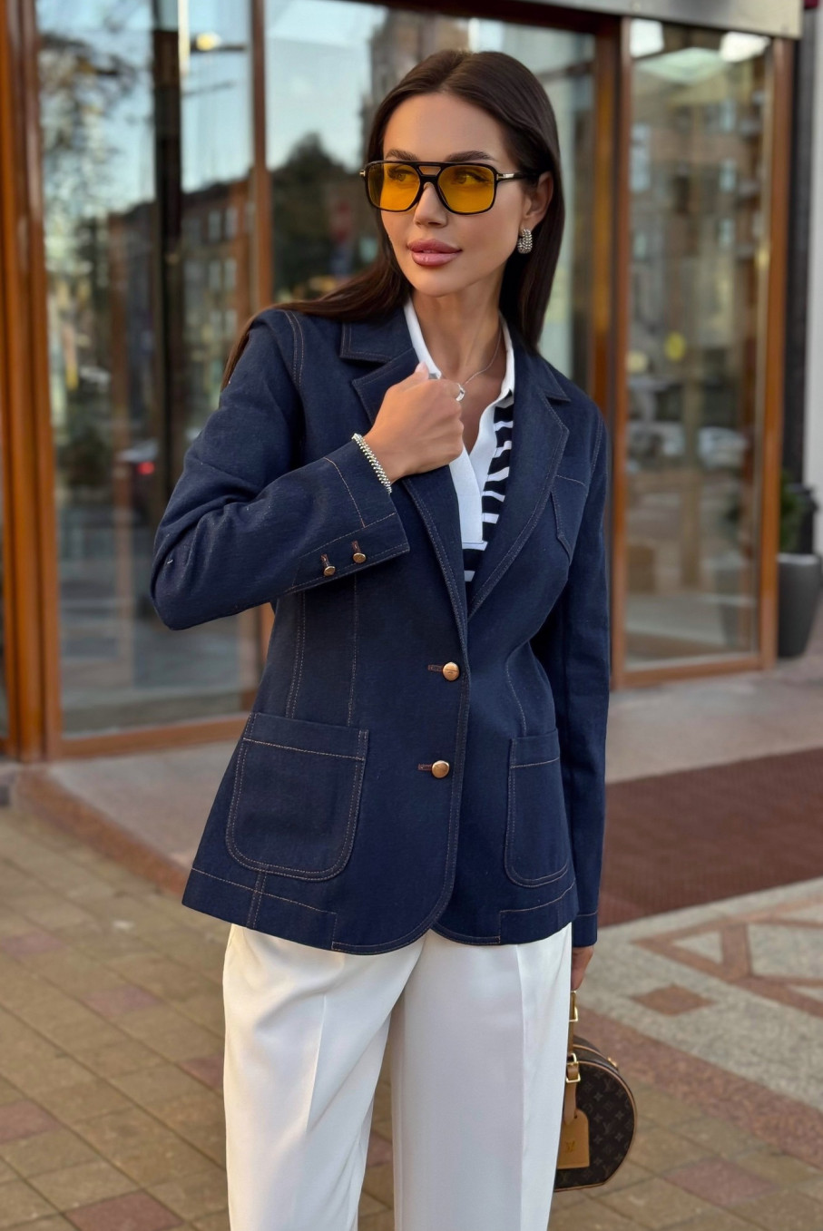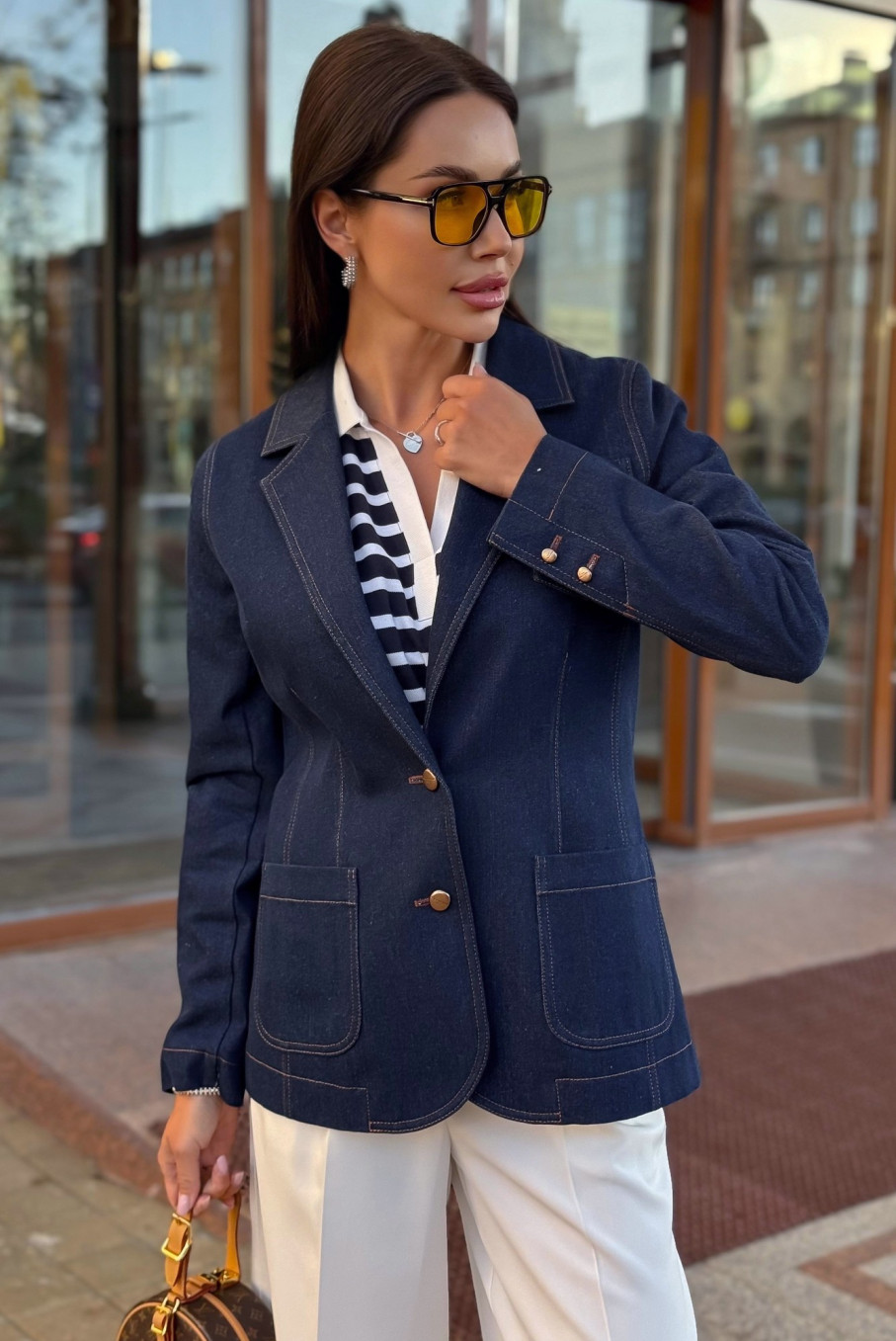 Жакет джинсовый женский давно перестал быть исключительно элементом casual. Сегодня пиджаки женские модные уверенно входят в деловой гардероб, особенно в темно-синем оттенке. Такой синий пиджак женский выглядит сдержанно, но при этом свежее классического черного.