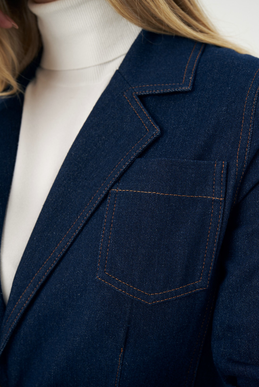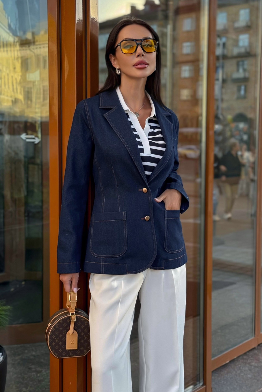 Если вам близок формат "пиджак женский классический", но хочется более современного звучания, деним добавляет образу легкости и актуальности. При этом темно-синий пиджак женский сохраняет деловой характер.