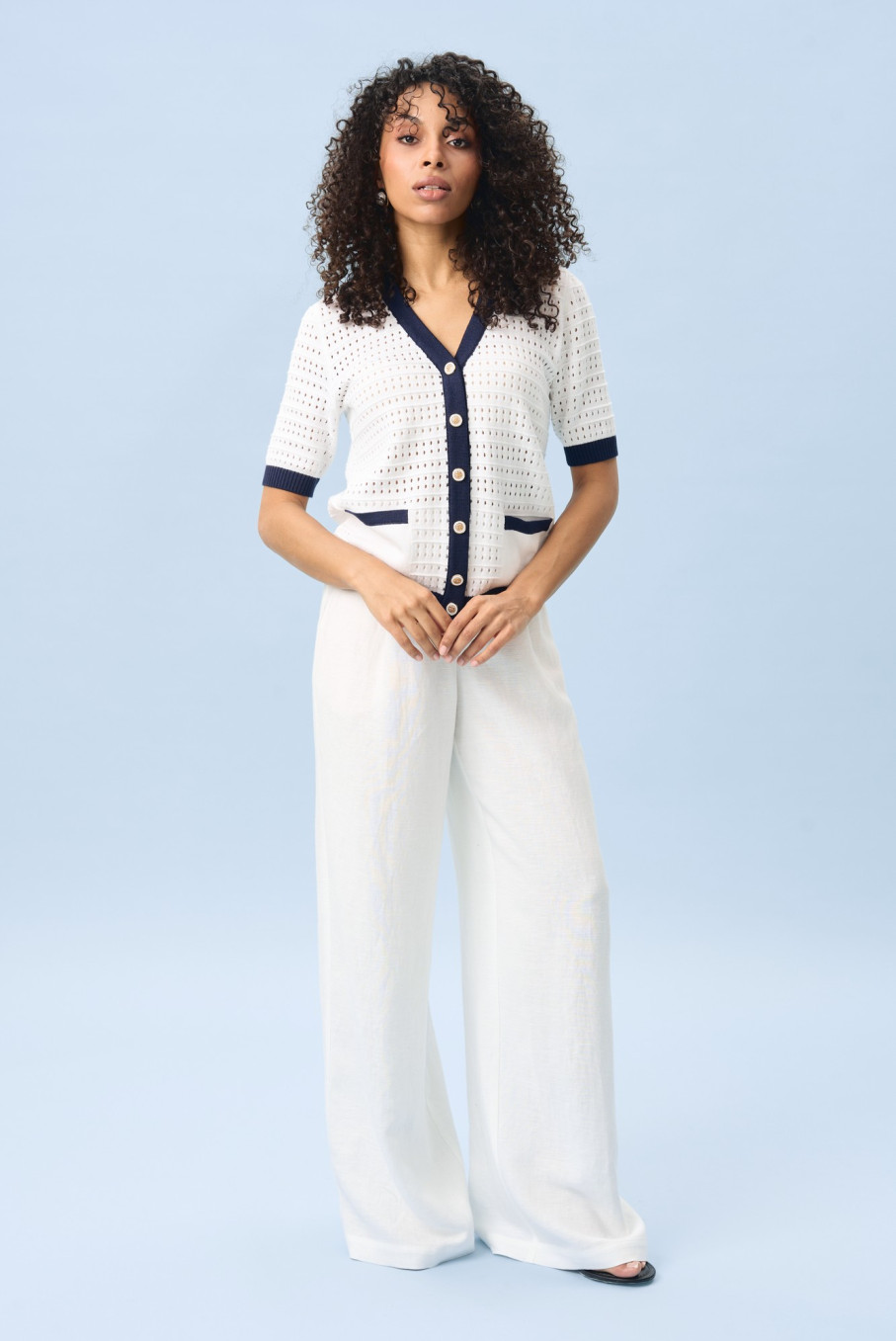 с широкими брюками в деловом стиле